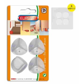 Paraspigoli gommati angolari con adesivo. Ideali per coprire gli angoli più esposti dei mobili per aumentare la sicurezza di adulti e bambini. Realizzati in PVC trasparente, sono solidi e resistenti.