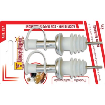 2 tappi ermetici ad espansione. Perfetti per conservare sciroppi, bevande ecc. in bottiglie di vetro di dimensioni comuni. Non mettere in lavastoviglie. Lavare a mano. Idonei per il contatto con gli alimenti. Misura universale. Composizione: tappo: 100% ABS, guarnizione: 100% silicone.