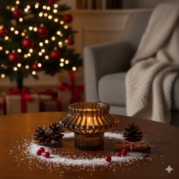 Funzionalità: Progettato per ospitare comodamente una candela tipo tealight, esaltando la sua fiamma grazie al vetro strutturato.