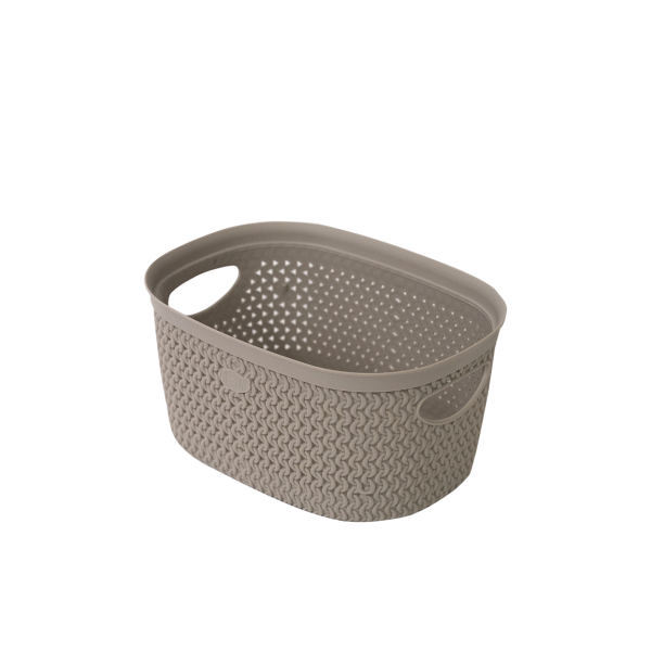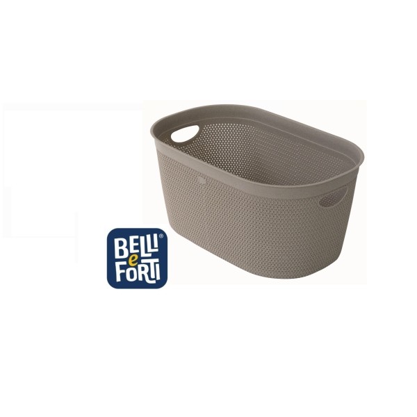 Cesta bucato in plastica con manici laterali,di colore beige tortora della linea "INTRECCIO" misura 23 × 18 x 12 cm