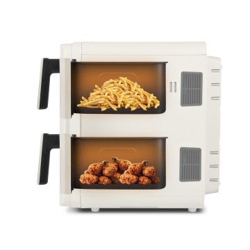 Cucinare sano, senza rinunciare al sapore e risparmiando energia? Assolutamente sì! Con la nostra friggitrice ad aria Ecofrit Dual è possibile preparare gustose e croccanti fritture con fino all’80% di grassi in meno! La tecnologia a circolazione d'aria rapida consente infatti di cucinare con poco o niente olio, cibi sani e deliziosi in pochissimo tempo.