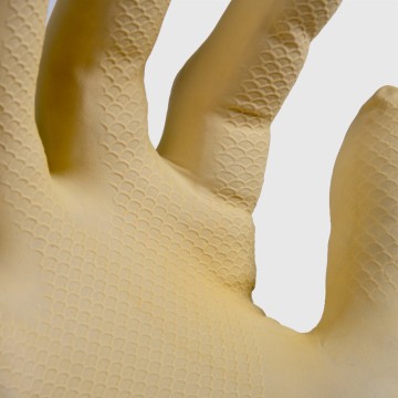 Guanti in lattice clorinato per uso domestico. Confortevoli perché morbidi e flessibili. Finitura satinata e palmo zigrinato per una migliore presa. Non adatti al contatto con alimenti. Non sterili. Composizione: 100% lattice. Misura: L. Colore: giallo.