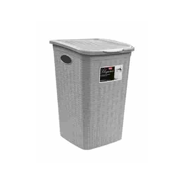 Cesto portabiancheria in plastica della linea "INTRECCIO" litri 55 di colore bianco,misure 37 × 39.5 × 54 cm