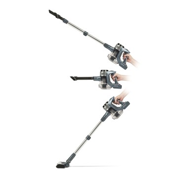 - Accessori: Spazzola motorizzata per pavimenti e tappeti, beccuccio con spazzola multifunzione, tubo telescopico in alluminio, supporto a parete, alimentatore