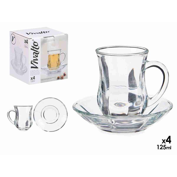 ARTE CONF.4 TAZZE CAFFE'C/PIATTO VETRO