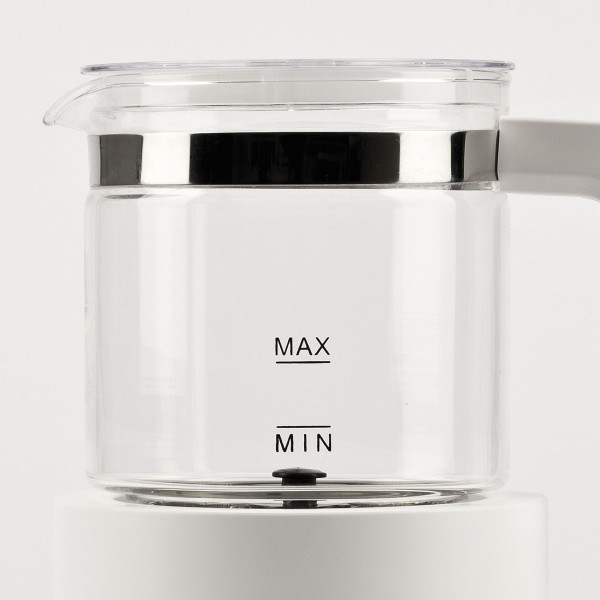 l bicchiere in vetro, garanzia di igiene e pulizia, è staccabile per servire il latte direttamente in tavola ed è anche lavabile in lavastoviglie.